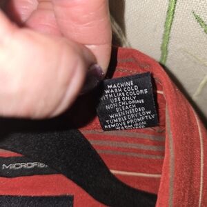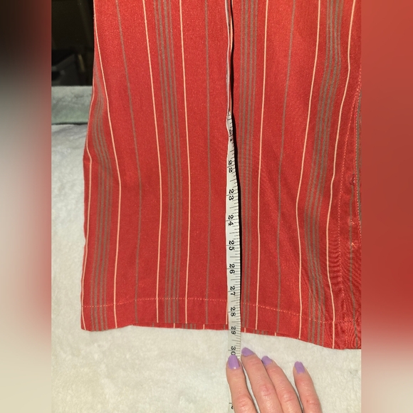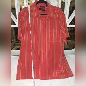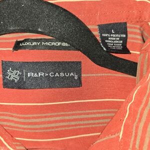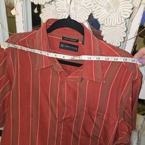 The color of this shirt is absolutely beautiful. It's more of a rusty red with a minimal gray stripe going vertical, all of these scenes match up. extremely well made shirt on the high end, all the spectrum
