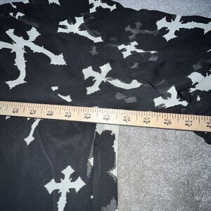 R. Rouge Womens Black & White Flowy Cross Print Goth Boho Tunic Dress fits XL