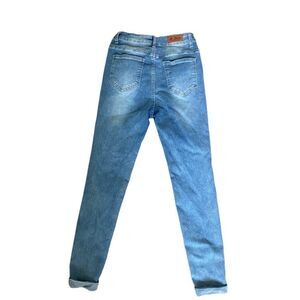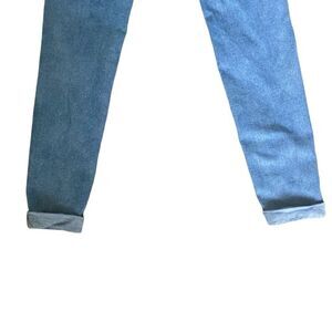 Lighter blue wash, ankle length, cuffed at the hem. Mid rise. Excellent condition. Super stretch.