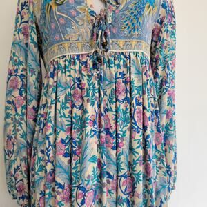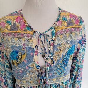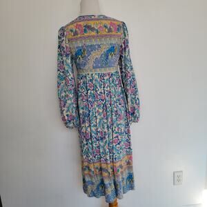 R Vivimos Boho Dress Vintage Print Birds Floral Empire Waist Midi Women Medium