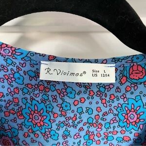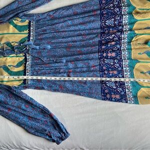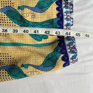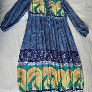 R. Vivimos Boho Festival Midi Blue/Yellow Peacock Print Dress Womens Sz L EUC