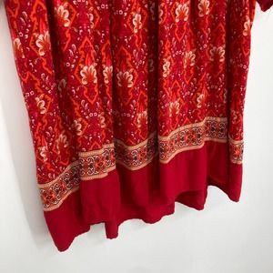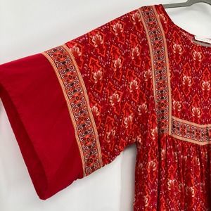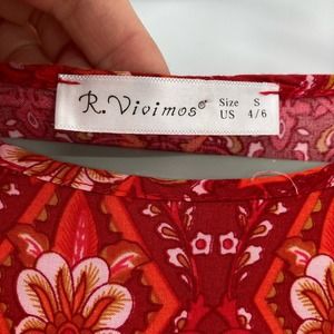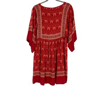 R. Vivimos Boho Moroccan Print Dress Red Tunic Short Small Resort