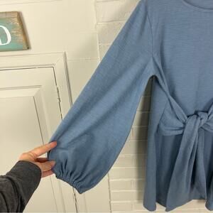 R. Vivimos Dusty Sky Blue Knit Tie Front Dress Size M 8/10