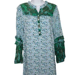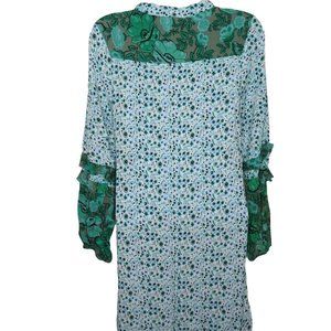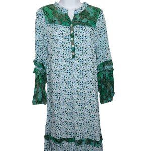 R. Vivimos Maxi Dress S Green Floral Ruffles Long Sleeve Peasant Prairie Cottage