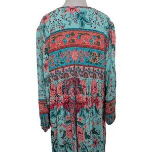 R Vivimos Mixed Floral Midi Dress Womens Size 2XL Blue Tassels Boho V Neck