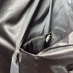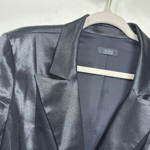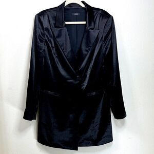 (R1) Aidan Mattox satin tuxedo mini dress, size L, in excellent used condition, does not fit true to size, see measurements in photos Chic satin blazer with a tailored fit. Ideal for formal events.