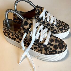 R12 Emma canvas Platform cheetah leopard print lace up shoes chunky Y2K -6.5