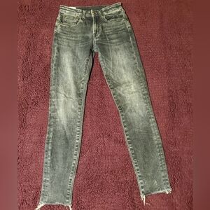 R13 Alison Skinny Distressed Black Wash Raw Hem Women Size 24 (25"wX28.5"l)