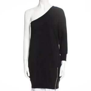 R13 Black One Shoulder French Terry Cotton Sweatshirt Dress 2016 Zip Slit S