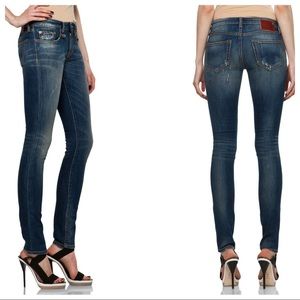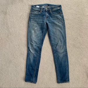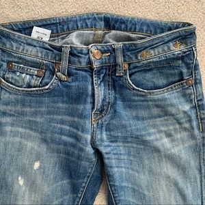 R13 Boy Skinny Jeans in Medium Blue Wash with Distressed Details