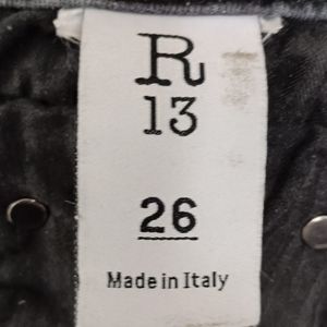 R13 Boy Straight Distressed Frayed Mid Rise Jeans in Black Wash Size 26 $398