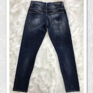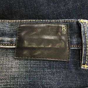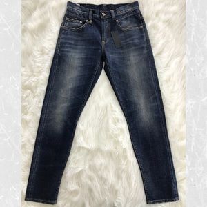 Refashioning the classics with their unique brand vision, R13 delivers their Boy Jeans. Tapered leg, classic worn-in wash, avant-garde detailing. Unfinished belt loops, staggered stitching and purposeful deconstruction define the brand's aesthetic, topped off with a touch of polished edge. Color: Vintage Blue. Fabric: 98% Cotton 2% Elastane. Made in Italy.