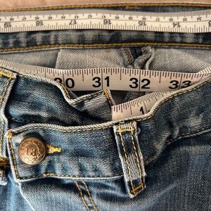 31" around the waistband - but I would not consider this a 31" waist because the front of the waistband is lower, so it's more on the hips