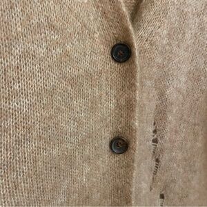 Features: Button front closure, front pockets, rib knit trim at cuffs and hem, intentional distressing, kid mohair blend, wool blend, cardigan.