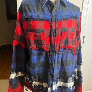 Brand New with Tag Multicolor plaid shirt with a distressed design. Shirt collar Long sleeves Chest flap pockets Button placket 100% cotton Machine wash Imported SIZE & FIT About 29" from shoulder to hem