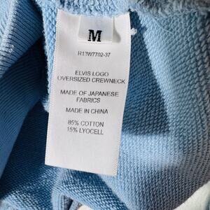 Amazing R13 Elvis Blue Oversized Crewneck Sweatshirt is a rare and unique piece featuring Japanese fabrics, giving it a distressed look. This stylish sweatshirt is perfect for women looking for a relaxed fit with a touch of Elvis flair. Made from a blend of lyocell and cotton, this oversized pullover sweatshirt is ideal for autumn, winter, and spring seasons, making it a versatile addition to any activewear wardrobe. The one part of the tag was removed, but the R13 tag and the material tag are present.