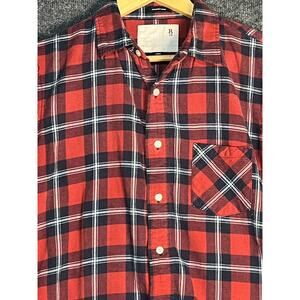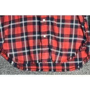 R13 Flannel Shirt Raw Hem Shredded Seam Inside Out Slim Red Plaid Womens Large