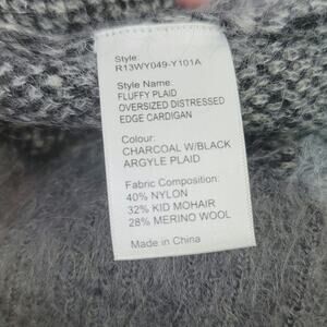 R13 Fluffy Plaid Oversized Distressed Edge Cardi Charcoal Blk Argyle Plaid, XS