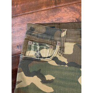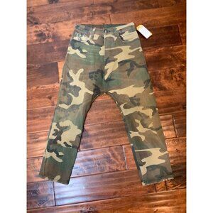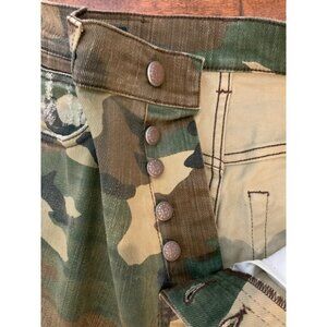 R13 Green Beige Camo Tailored Drop Distressed Denim Jeans, Size 24