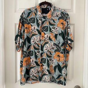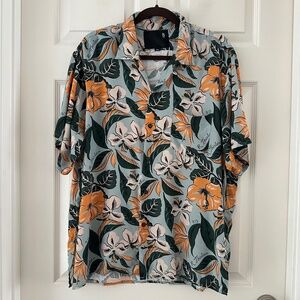 R13 Hawaiian Shirt Blue Floral Print Unisex Size Large