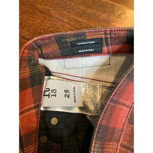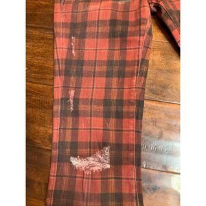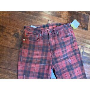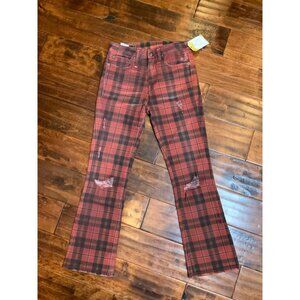 R13 Kick Fit Flare Red Plaid W/ Rips Distressed Jeans, Size 25