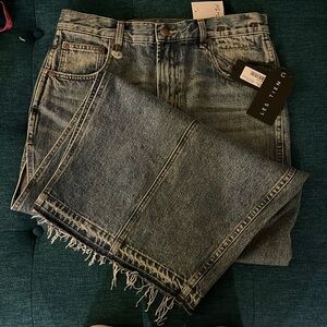 Brand news with tags and a nice spin on the denim skirt. Very flattering ring with raw hem detail.
