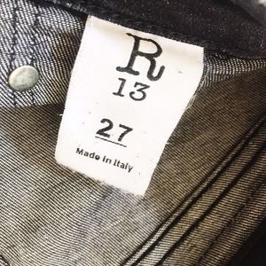 R13 Low Rise Black Distressed Skinny Jeans Size 27
