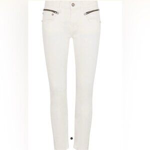 R13 Skinny Leg Jeans White Mid-Rise Cropped & 5 Pockets Distressed Accents Zip & Button Closure