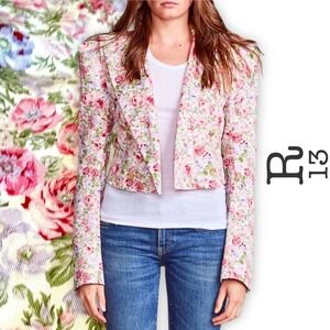 R13 NWT Pink Floral Square Shoulder Double-Breasted Cropped Blazer Rare HTF S