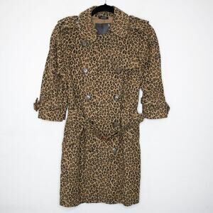 R13 Raglan Sleeve Trench Coat Leopard Animal Print Double Breasted Belted XS