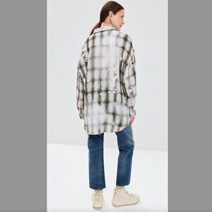 Oversized double-faced cotton gauze shirt. Frayed edges, check pattern, and bleach effect throughout.