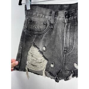 R13 Shredded Slouch Distress Gray Black Denim Jean Shorts Women 27 Indie Sleaze