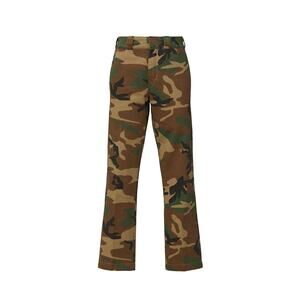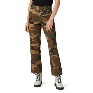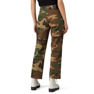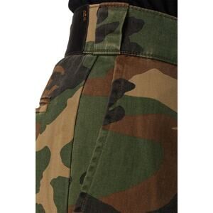 Green camo printed cotton (100% Cotton). Pants. Hidden fly with button closure. Straight Fit. Pockets. Sits at natural waist. Rise: 11.5"". Inseam: 28"". 39.5"" from waist to hemline. Imported.
