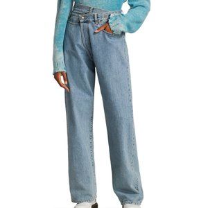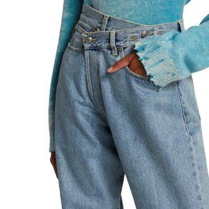 Fashion-forward wide-leg jeans with a unique foldover waist.