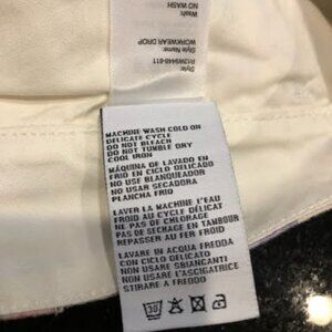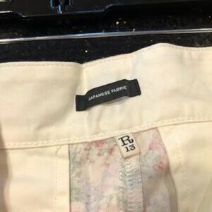100% cotton. Japanese Fabric Made in China. Machine wash. Zip fly with hook-and-bar closure. Side slant pockets. Back welt pockets with button closures. Belt loops. Drop crotch silhouette.