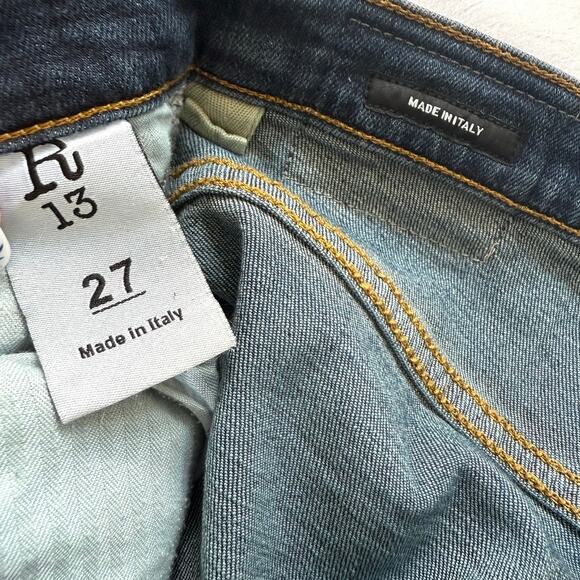 R13 X-Over Crossover Jeans Size 27 Made in Italy Distressed Dark Wash Denim