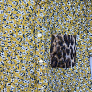 R13 Yellow Floral and Leopard Cotton Tony Button Down Shirt, Unisex Size Small