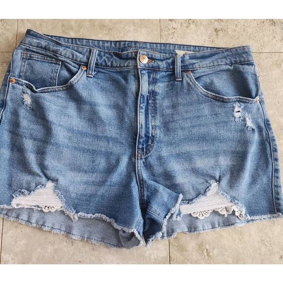 R17 Wild Fable distressed cut-off jean shorts with lace