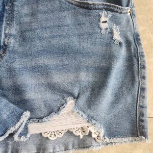 ▪︎DESCRIPTION: Distressed cut-off jean shorts with lace.