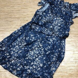 R-177 Tularosa Tanya Dress Blue Floral V Neck Cut Out Sleeveless Ruffle M New