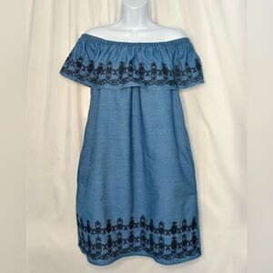 R1893 Blue Off-Shoulder Dress with Black Embroidery (819)