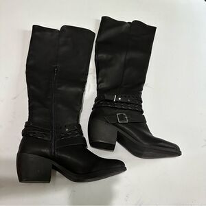 These boots are new but they do not have the original box. They zip up the inside and have nice designs around the ankle.