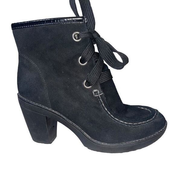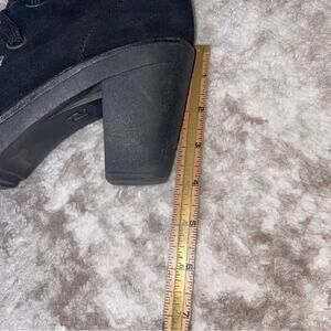 R2 black suede bootie ankle boot lace up block heel SZ 7.5 chunky heel witchy
