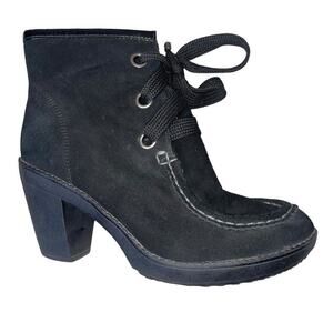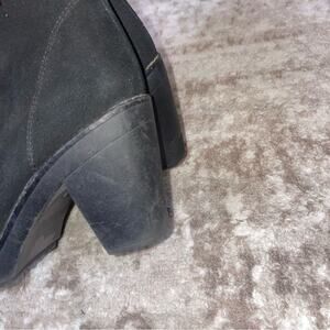 R2 black suede bootie ankle boot lace up block heel SZ 7.5 GUC