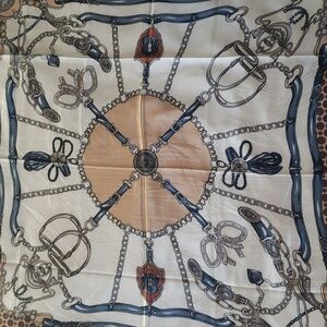 R-2155- Scarf Women's 100 % Polyester Blue Cream, Light Gray NWT
