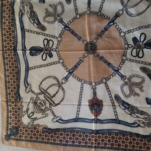 Scarf Women's 100 % Polyester Blue Cream, Light Gray NWT