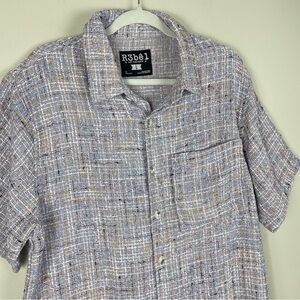 R3bel Button Down Mens Large Short Sleeve Urban Shirt Top Knit Casual Purple
