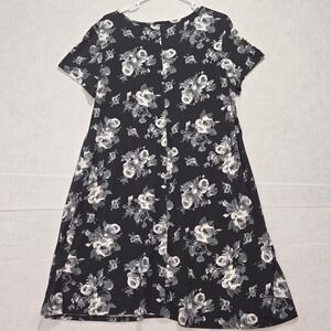 R#78 Jamie & Layla Black Floral Print Short Sleeve Swing Dress Women's Size L