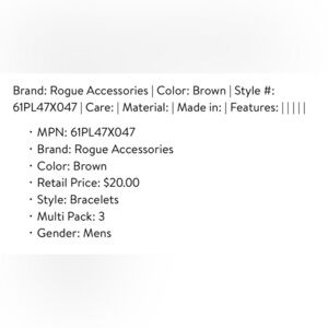 RA Rogue Accessories 3-Piece Men’s Wooden Beads Bracelets NWT