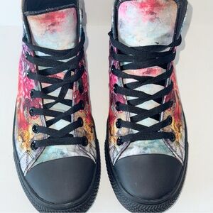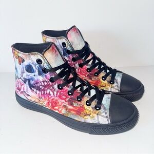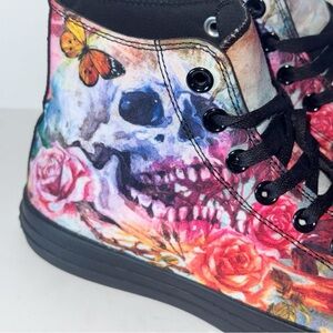 RAAD Emerald Blossoms High Top Sneakers WATERCOLOR SKULL BUTTERFLY GOTH W9 M7.5 PUNK ROCK&ROLL